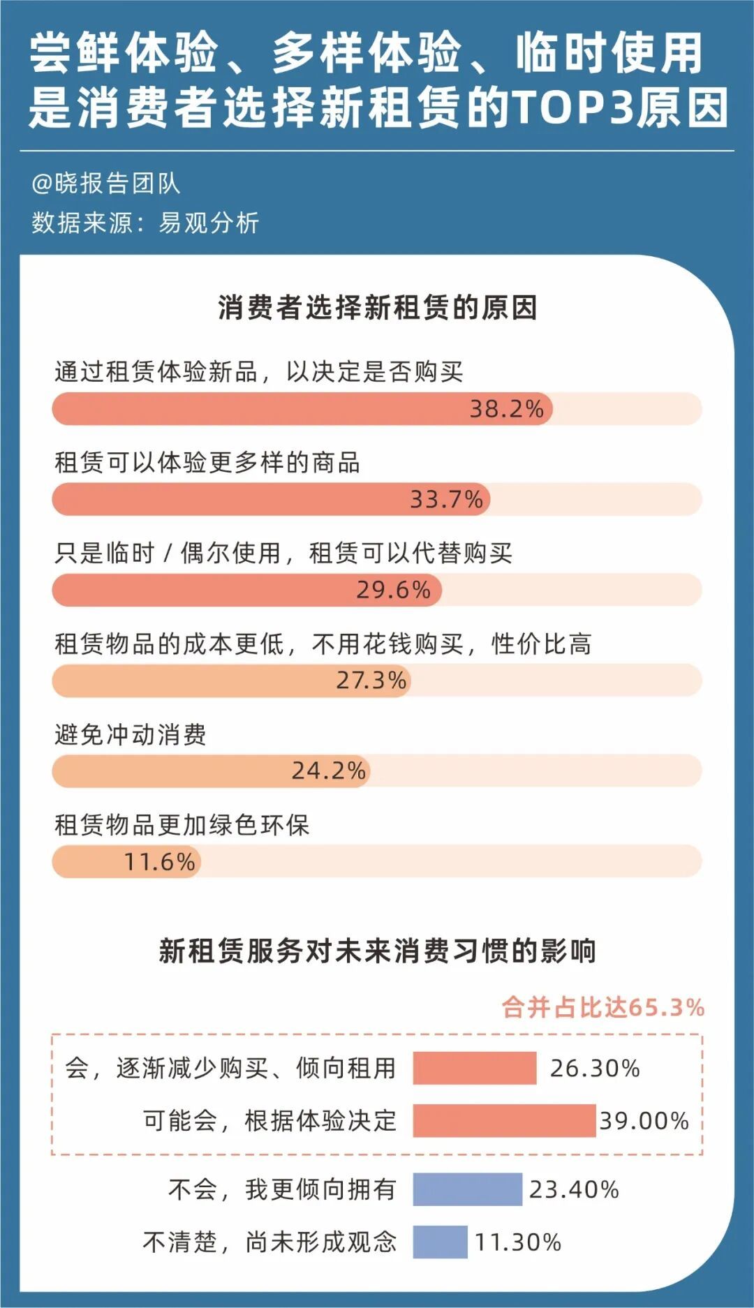 更重要的是,租賃還成了年輕人“低成本試錯(cuò)”的方式,幫助他們在消費(fèi)前避免“踩坑”。易觀分析的調(diào)研顯示,有38.2%的人選擇租賃是為了“體驗(yàn)新品,決定是否購買”,還有33.7%是想“體驗(yàn)更多樣的商品”。
