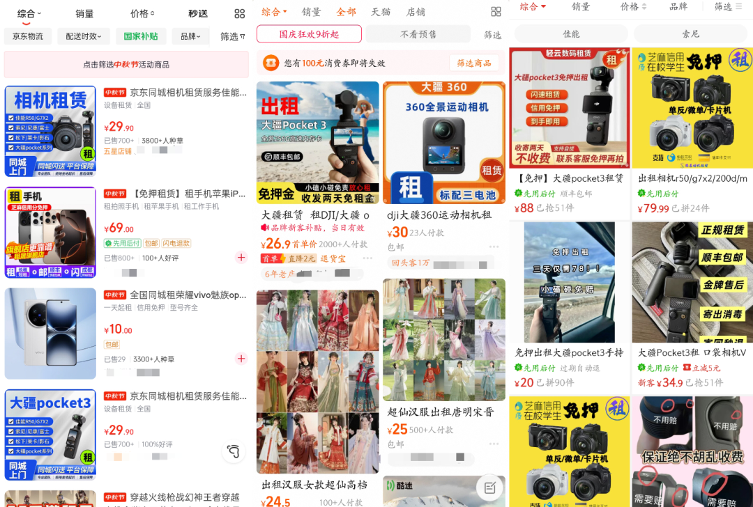 ◎ 租什么?從3C數(shù)碼到母嬰用品,“萬物皆可租”。