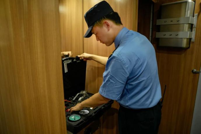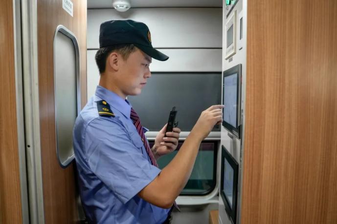 在車廂內(nèi)為相關(guān)設(shè)備設(shè)施“拍照”,也是他們的日常工作之一。他們手中類似攝像機(jī)的設(shè)備叫做巡檢儀,可以幫助他們記錄檢查過程、設(shè)備狀態(tài),便于后續(xù)通過分析影像資料,規(guī)范檢查流程,保證標(biāo)準(zhǔn)化作業(yè)。