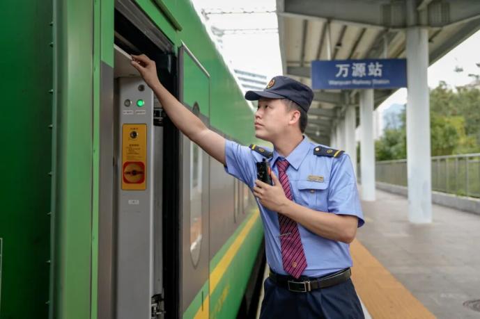 當(dāng)天13時(shí)24分,隨車機(jī)械師跟隨列車抵達(dá)萬(wàn)源站后,還要繼續(xù)重復(fù)發(fā)車前的檢查,為迎接新一批旅客做好準(zhǔn)備。