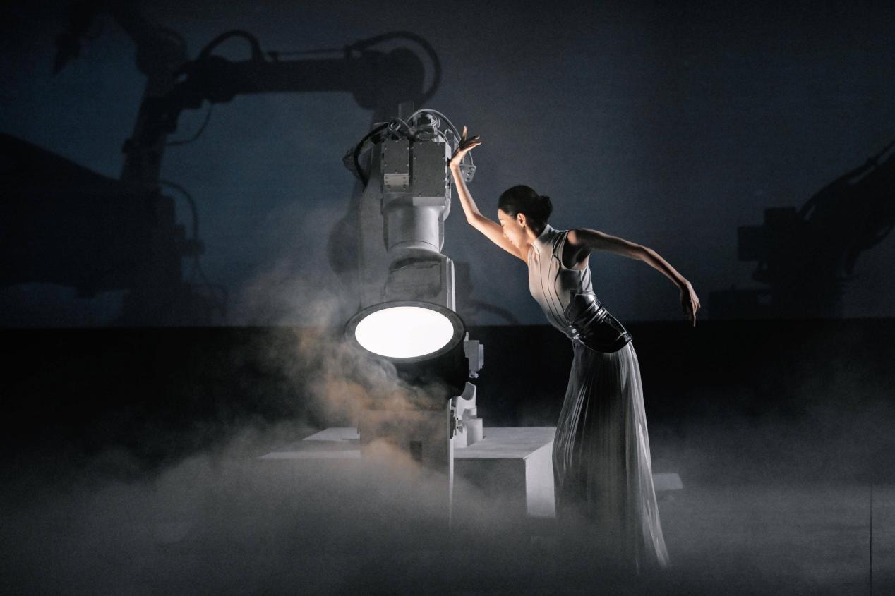 《朤月狂想曲》里,舞蹈家朱潔靜和工業(yè)機械臂優(yōu)美共舞,在芯片晶體上疊化出“動能之月”的意象。