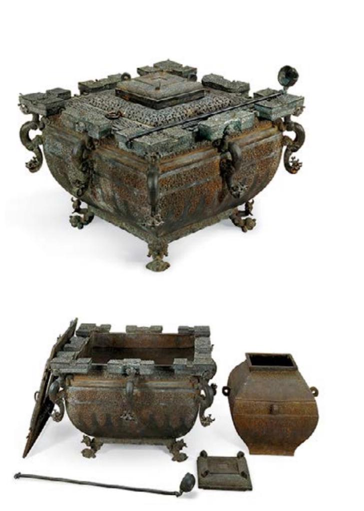 影片中用于冰酒的銅鑒缶,正是出自湖北省博物館館藏的曾侯乙銅鑒缶。它由外部的鑒和鑒內(nèi)置的缶組成,是中國最早的“冰箱”。在鑒的內(nèi)部放上缶,中間空隙放上冰塊,可在祭祀和宴饗時冰鎮(zhèn)酒?!耙怨艦殍b”“擊缶而歌”等成語也由此衍生而來。