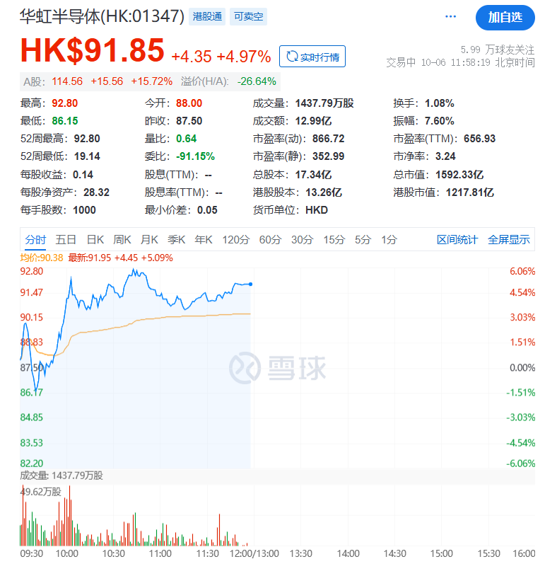 華虹半導(dǎo)體高開高走,盤中一度漲超6%,股價再創(chuàng)歷史新高,該股年內(nèi)大漲超320%。