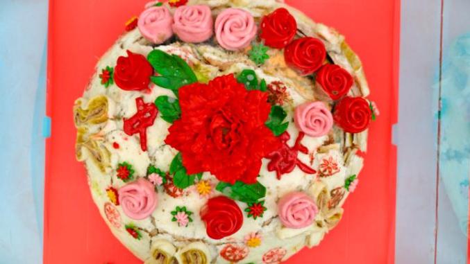 面坯入屜后,宋維梅接過幫工做好的面花,巧手組合成復(fù)雜圖案,用清水輕輕粘在面坯表面,為月餅增添傳統(tǒng)韻味。