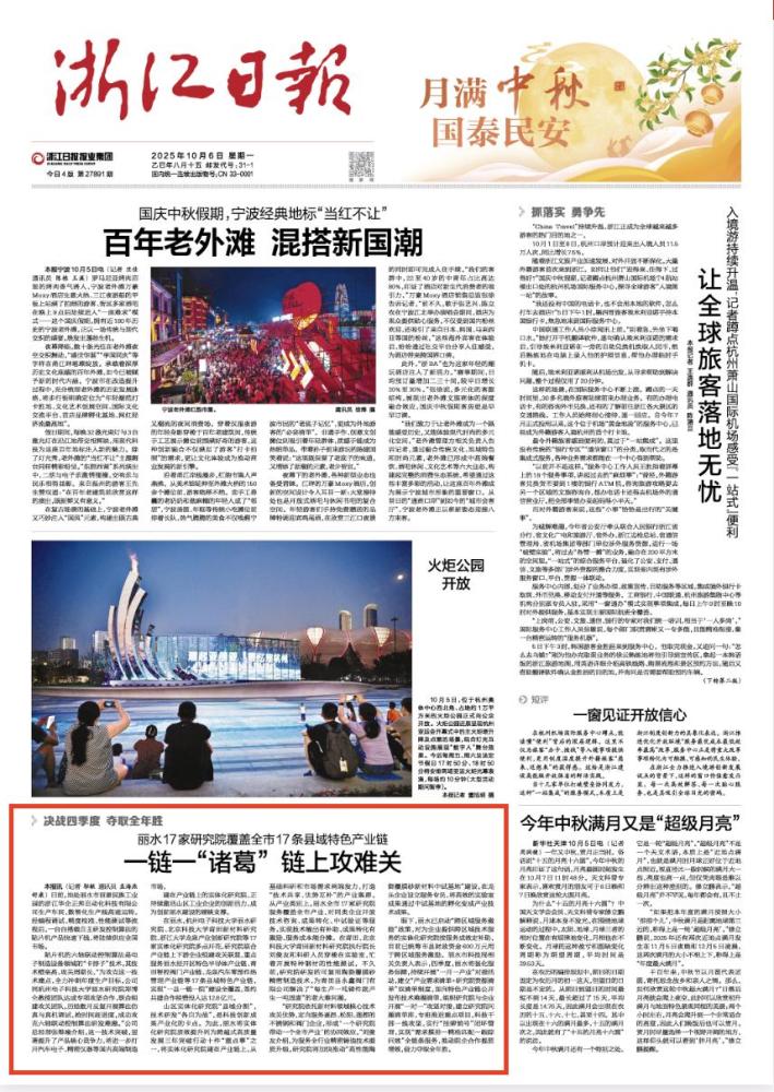 浙報頭版:麗水17家研究院全面覆蓋17條縣域特色產(chǎn)業(yè)鏈