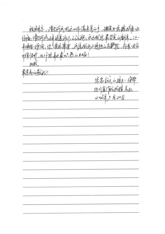 徐華的手寫信里,寫滿了二十一年的“堅守答卷”。從2004年入伍至今,這位80后消防員的戰(zhàn)靴踏遍了無數(shù)災難現(xiàn)場:在汶川地震中緊緊握住幸存者的手,在江安化工爆炸現(xiàn)場穿梭于鋼筋叢林,在長寧福榮筍制品加工廠中毒事故中全力救援被困人員,在筠連山體滑坡時筑起“雙防雙控”的安全堡壘。
