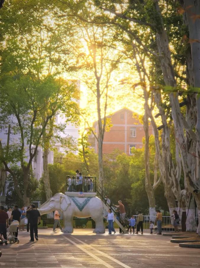 摩天輪下,湖光與樹影調(diào)和出城市的溫柔輪廓;那座熟悉的大象滑滑梯前,依舊回蕩著不息的歡聲笑語。