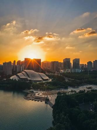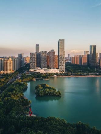 從歷史中走出,來到現(xiàn)代合肥的城市會(huì)客廳——天鵝湖公園。湖畔的金融建筑群勾勒出壯麗的天際線。