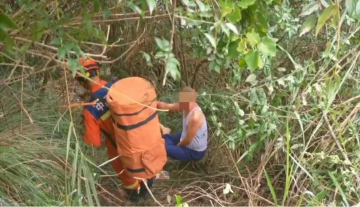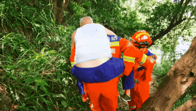 暖心救援!消防員背出被困陡坡老人