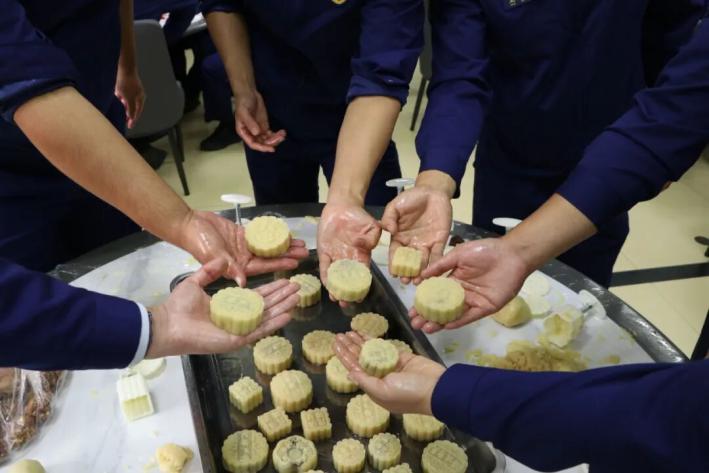 中秋之際,消防隊里彌漫著甜香。消防員們放下水槍,系上圍裙,與趕來的家人和隊友圍坐在桌前,開心地將豆沙、蓮蓉包進餅皮。平日里在訓練場能扛百斤器材的他們,此時小心翼翼地捏著餅皮,生怕破壞了這份難得的溫馨。
