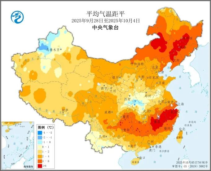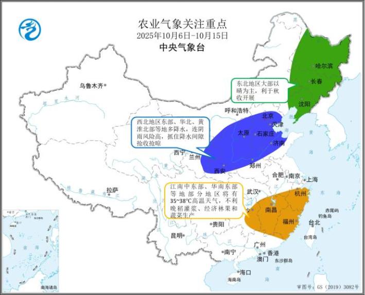 上一周(2025年9月28日至10月4日),全國大部分農(nóng)區(qū)氣溫接近常年同期,或者偏高1℃至4℃。其中,東北地區(qū)大部、內(nèi)蒙古東部、江南大部、西南地區(qū)東南部等地偏高4℃至6℃。