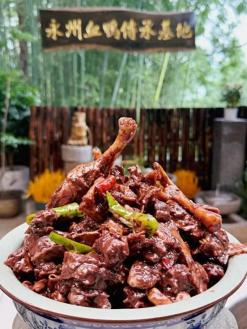 選用放養(yǎng)的麻鴨,宰殺時保留新鮮鴨血,制作時需將鴨肉炒干水分后加姜、蒜、辣椒等調(diào)料翻炒,最后淋入鴨血快速攪拌使鴨肉裹勻。成品醬色油亮,鴨肉緊實,鴨血嫩滑,是下飯的絕佳選擇。