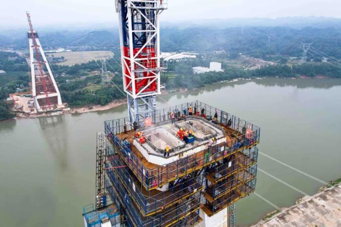 天眉樂高速重要進(jìn)展:虎渡溪岷江特大橋主塔封頂