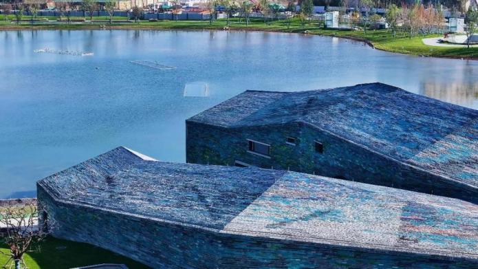 未來之瞳科學(xué)公園是一個(gè)集科技、文化、生態(tài)于一體的公共空間,開闊的水域與現(xiàn)代化建筑相互映襯,充滿了未來感。公園最吸引人的是被網(wǎng)友稱為“西安最圓水域”的瞳湖,一汪碧水宛如大地之眼,倒映著波浪形的建筑群。