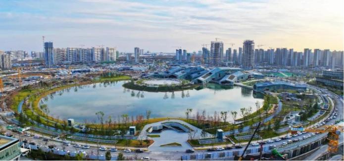 從公園的規(guī)劃來看,整個(gè)公園如同眼瞳般環(huán)環(huán)相套,既有水景,又有植被,還有西安大劇院坐鎮(zhèn)。它與西安大劇院聯(lián)動(dòng),呼應(yīng)大劇院系列總部建筑,形成“城山相映、山水相映”的美景。