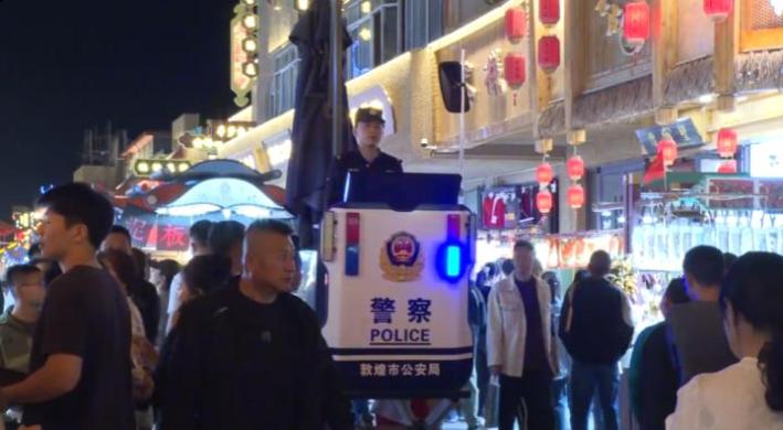 敦煌市公安局特警大隊輔警劉瀟表示:“國慶節(jié)假日期間,人流量和車流量都大幅增大,敦煌公安相應(yīng)地加大了巡邏頻次,加強了巡邏警力,就是為了給游客解決困難,提供更好的旅游環(huán)境。”