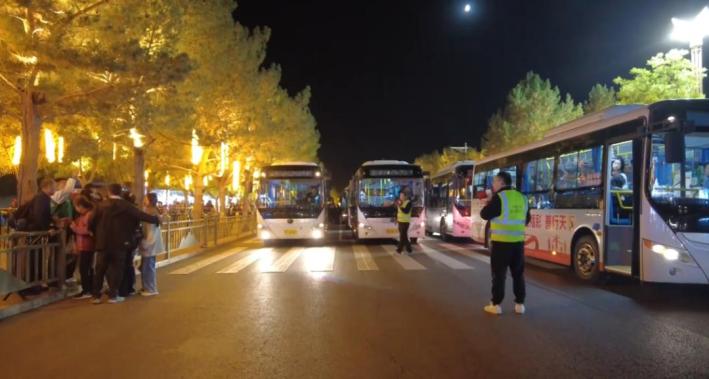 面對(duì)演出結(jié)束后大量返城的游客,敦煌市貼心推出城市公交免費(fèi)轉(zhuǎn)運(yùn)服務(wù),數(shù)十輛免費(fèi)直達(dá)市區(qū)的公交車增加運(yùn)營(yíng)頻次,保障游客返回市區(qū)的乘車需求。此外,景區(qū)今年在1號(hào)停車場(chǎng)東側(cè)新增可容納7000輛車位的2號(hào)停車場(chǎng),景區(qū)在門口、免費(fèi)公交停靠站等人員集中區(qū)域增派工作人員,加強(qiáng)現(xiàn)場(chǎng)引導(dǎo)與秩序維護(hù)。