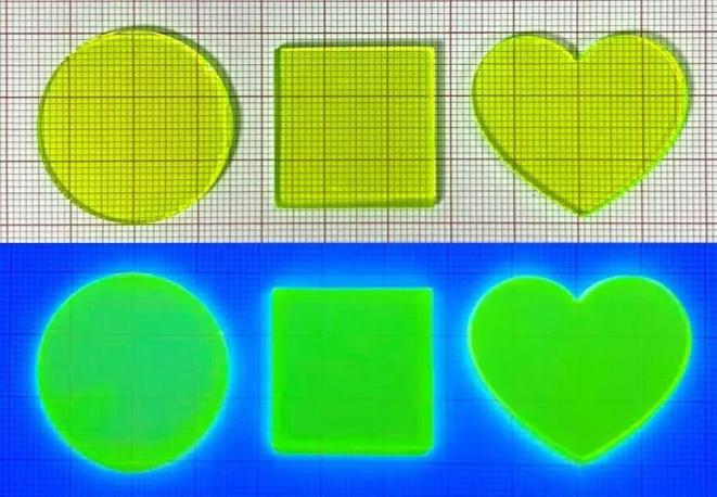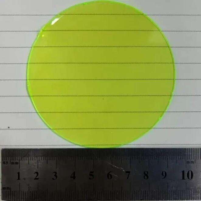 其次是“凍結(jié)的無(wú)序”的玻璃態(tài)狀態(tài)。團(tuán)隊(duì)利用“熔融淬冷”工藝,在材料里的分子整齊排列成晶體前就快速冷卻固化,將體系定格為均勻且無(wú)序的玻璃態(tài)。這種材料整體像玻璃一樣透明,可見(jiàn)光透過(guò)率超過(guò) 70%,這意味著光信號(hào)可以幾乎不受阻礙地直接穿過(guò),散射損耗顯著降低。同時(shí),玻璃態(tài)制備工藝簡(jiǎn)單可擴(kuò)展,能制得大尺寸、可定制形狀的閃爍屏,而且材料本身韌性高、耐用性好,適合復(fù)雜工業(yè)環(huán)境。