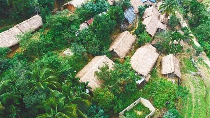 村里的茅草屋種類齊全,堪稱黎族生活文化變遷的歷史縮影,村民至今保留著織黎錦、釀山蘭酒、唱古謠的生活方式。