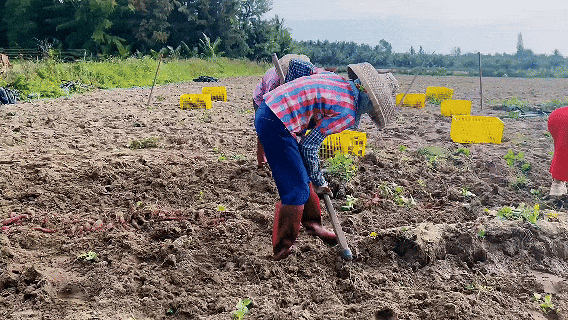 “吃”海藻長大的地瓜是這里的特色,村民們用馬尾藻堆肥,在海邊沙地種地瓜。