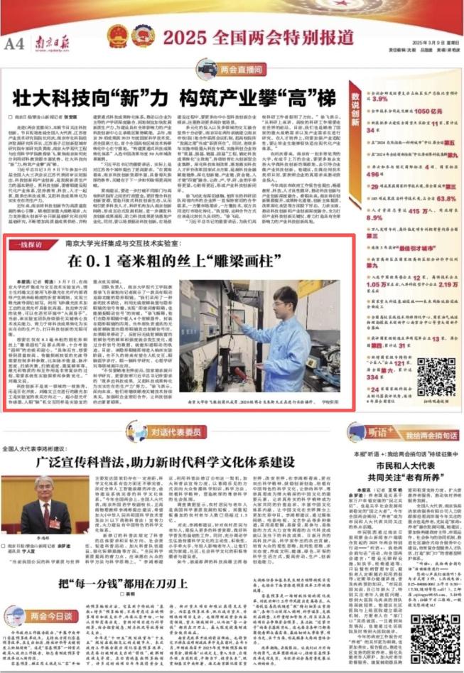 《南京日報》報道南京大學光纖集成與交互技術實驗室
