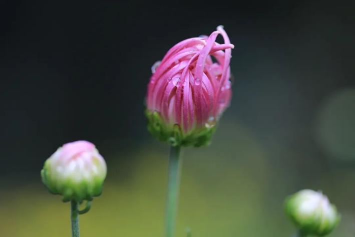 菊花的顏色豐富多樣,有紅、粉、紫、白、黃、綠、墨等。它們姿態(tài)各異,有的含苞待放,有的淡然素雅,有的熱情似火。