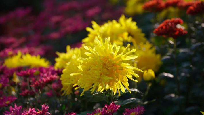 綻放的菊花是秋天里的一抹亮色。走進(jìn)武定獅子山,一簇簇姹紫嫣紅、形態(tài)萬千的秋菊便映入眼簾,在綠葉的襯托下韻味無窮。