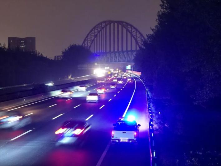 10月6日晚,合肥繞城高速迎來較大客流,交管部門開展路面巡查工作。
