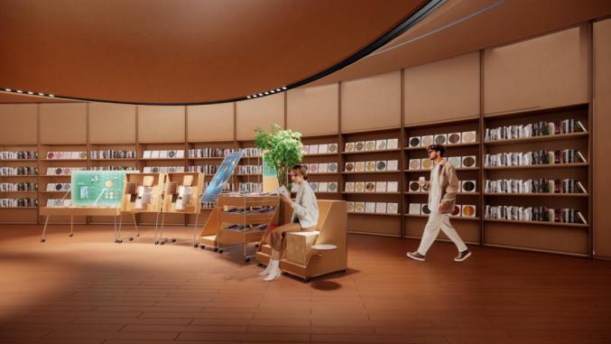 廣場還設(shè)有多元文化空間,匯集了設(shè)計物料圖書館和前沿科技展場。