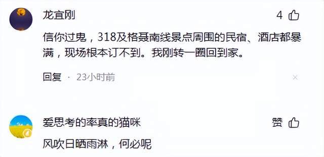 車企營銷文案還說電車滲透率達六成,很多自駕游旅客選擇露營,導(dǎo)致318路線旁的酒店空空如也。但當?shù)鼐W(wǎng)友馬上反駁,稱自己剛?cè)ァ?18及格聶南線景點”周邊的民宿和酒店看過,入住客人超多,根本沒有空房間。