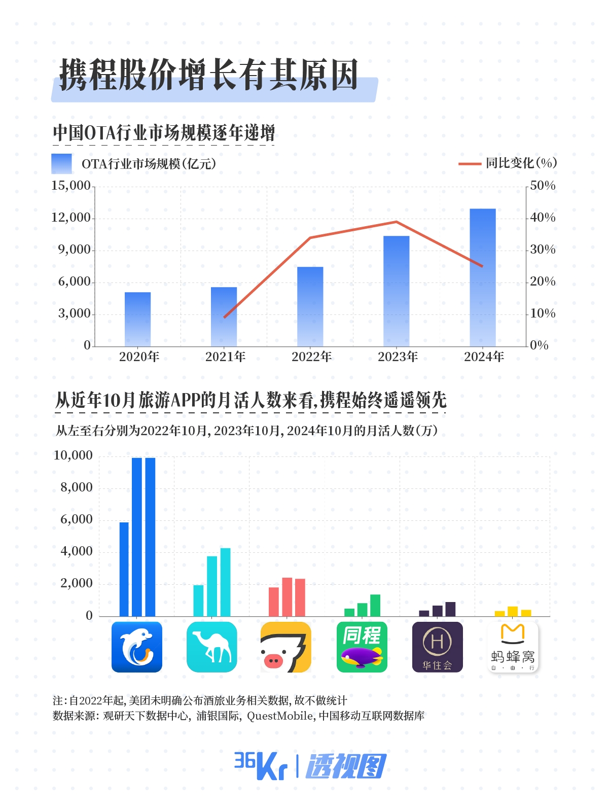 QuestMobile數(shù)據(jù)顯示,2022年10月,攜程與去哪兒的月活用戶數(shù)是其他旅游平臺(tái)的數(shù)倍至數(shù)十倍。時(shí)至2024年10月,這一差距還在加大。今年1月,攜程也宣布投入超億元的資源幫商家減負(fù)。相信在未來,OTA行業(yè)會(huì)呈現(xiàn)“多平臺(tái)比價(jià)”的態(tài)勢。至少在一段時(shí)期內(nèi),產(chǎn)業(yè)鏈的利益會(huì)向下游的中小企業(yè)傾斜。