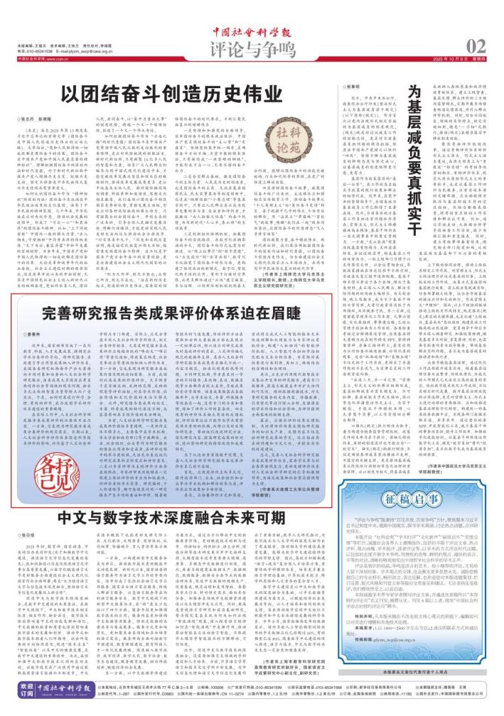 總之,完善人文社會科學(xué)研究報告類成果評價體系,需要學(xué)術(shù)界與社會各界共同努力,更好發(fā)揮評價體系對人文社會科學(xué)研究的引導(dǎo)和激勵作用,為滿足政策和社會需求提供智力支撐。