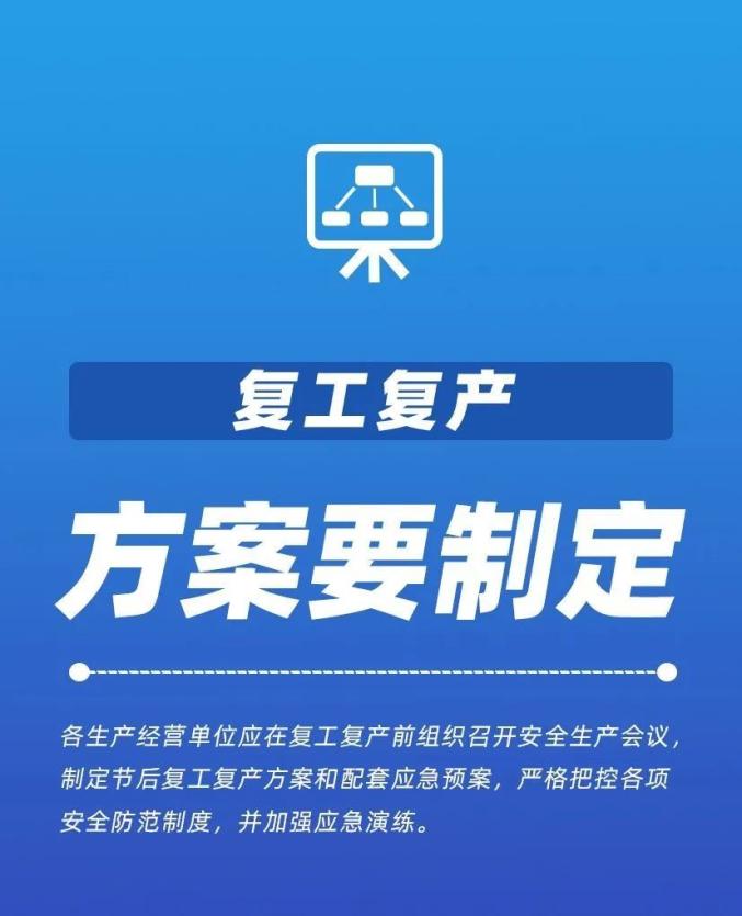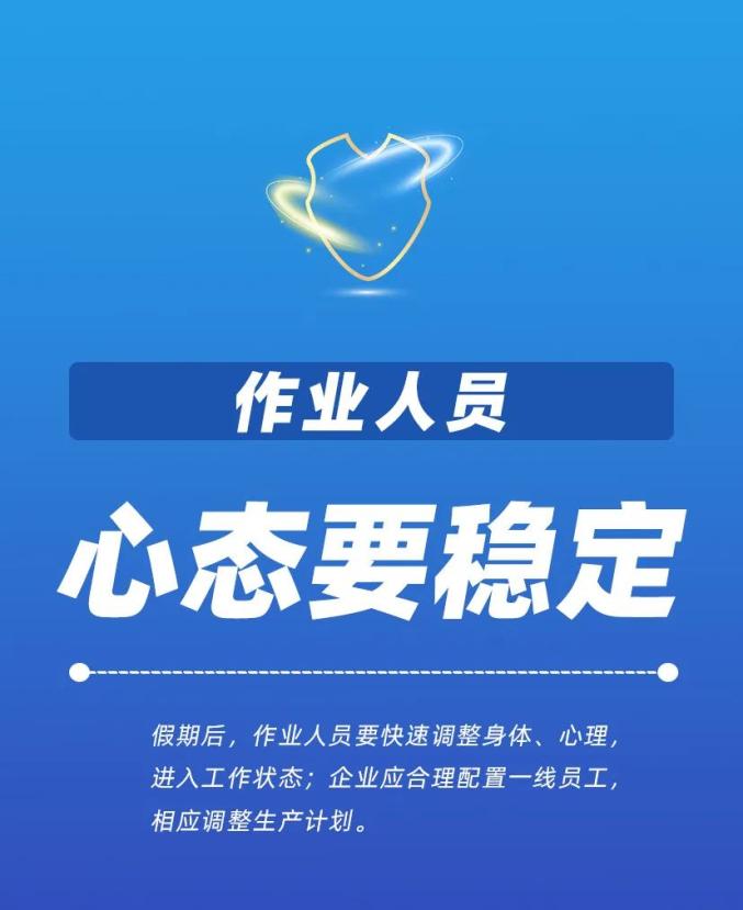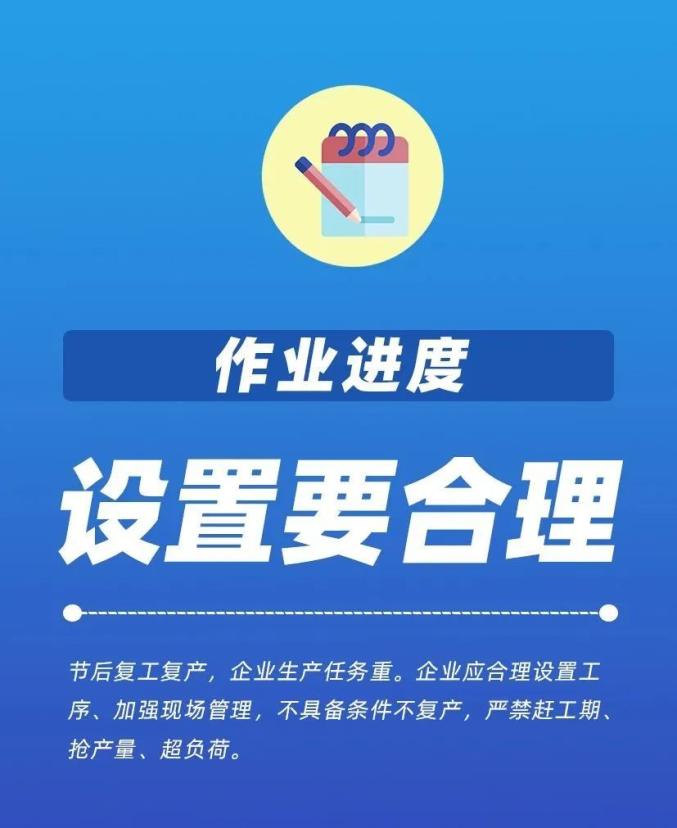 節(jié)后可能面臨一些工作積壓,需要合理安排生產(chǎn),科學有序地完成工作,切勿盲目搶趕工期,嚴禁違法趕工行為,嚴防因疏忽導致事故。