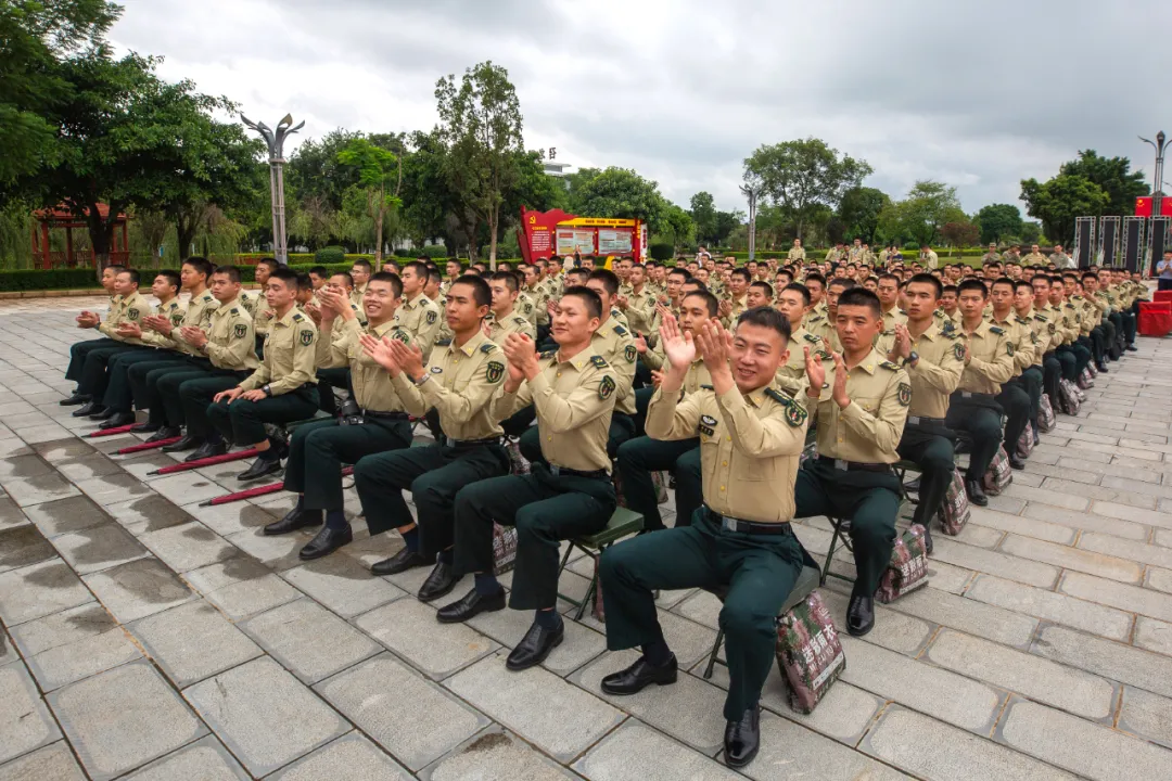 新郎們左手牽著愛人,右手莊嚴敬禮。部隊領導發(fā)表致辭,并為新人們送上了美好的祝福。新人們宣讀婚書,許下了莊重的誓言。
