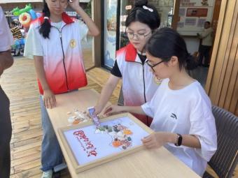 國慶節(jié)當(dāng)天,汕尾市金町濱海旅游區(qū)黨群服務(wù)中心開展“貝殼作畫 繪就家國情懷”活動。20多名青少年學(xué)生與游客在黨員志愿者帶領(lǐng)下,用海洋貝殼創(chuàng)作黨徽、中國地圖等圖案。黨員志愿者講解紅色歷史,讓黨建與藝術(shù)、紅色文化與藍色海岸在此交融。
