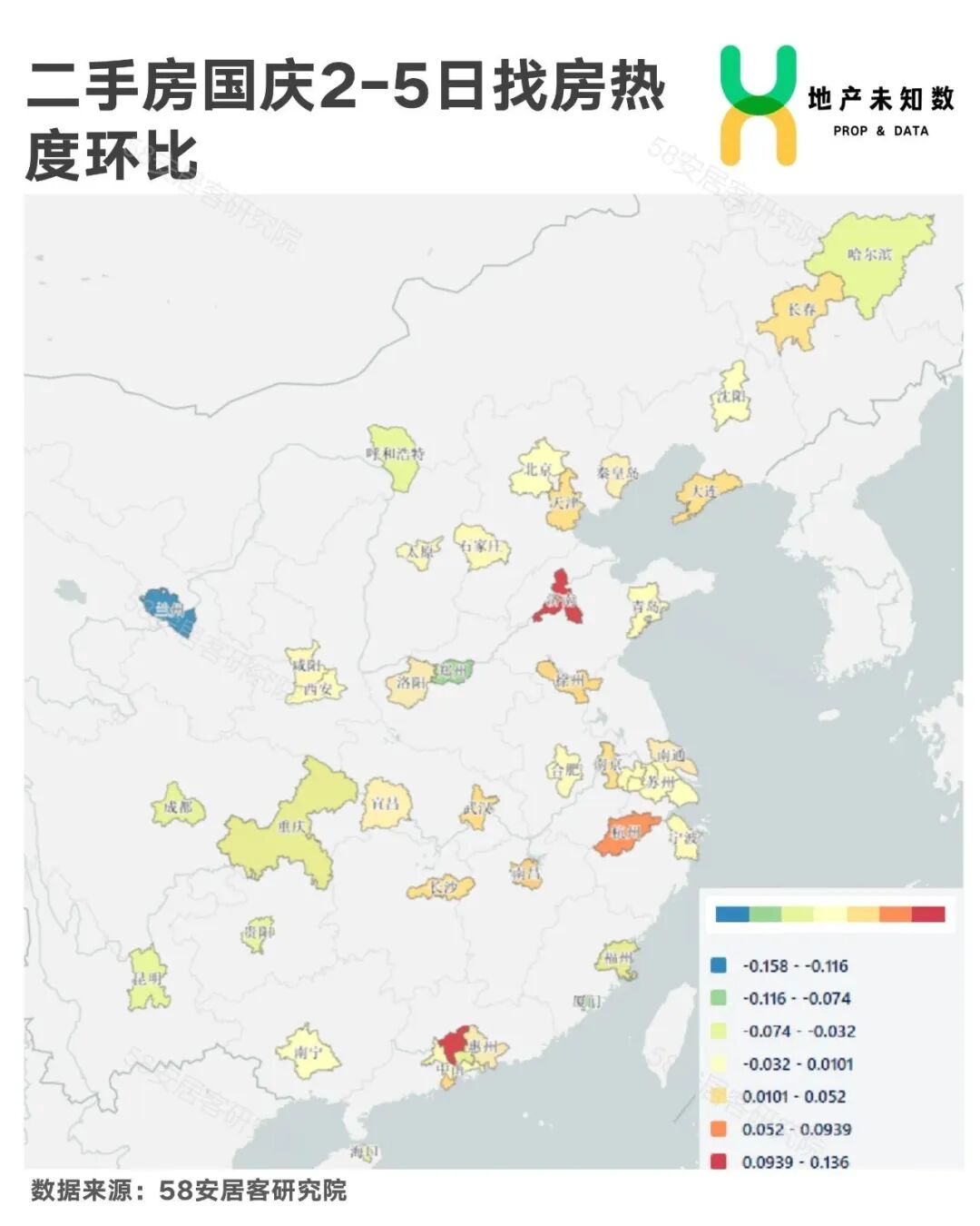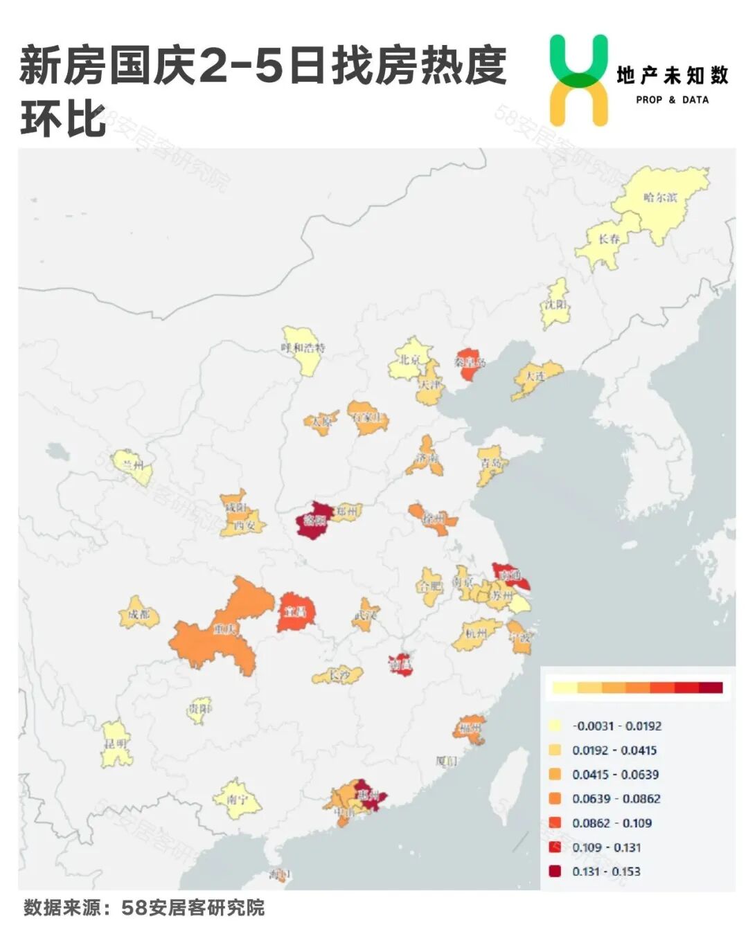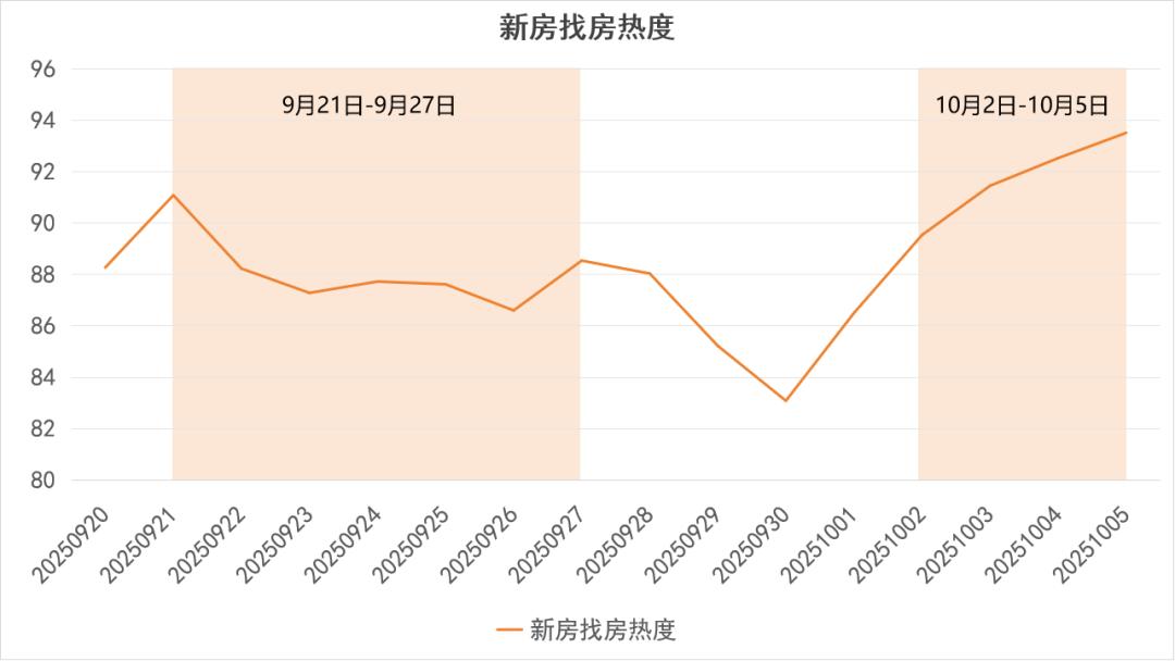 新房市場(chǎng):國(guó)慶期間找房熱度環(huán)比微升4%。不少開發(fā)商借假期推出特價(jià)房、首付優(yōu)惠等促銷活動(dòng),加上部分城市返鄉(xiāng)置業(yè)需求的釋放,帶動(dòng)了新房咨詢量的小幅上漲。
