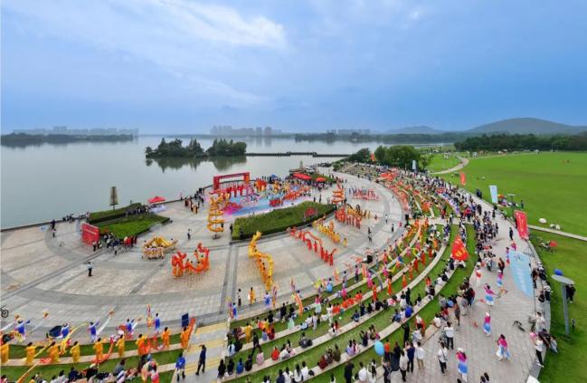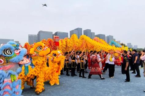 比賽現(xiàn)場,彩龍追逐著龍珠,時而翻騰盤旋,時而昂首沖天;雄獅或憨態(tài)可掬,或威武剛勁,將力與美完美結合。歡呼聲、鑼鼓聲、喝彩聲交織在一起,讓秋日的大龍湖畔熱鬧非凡。