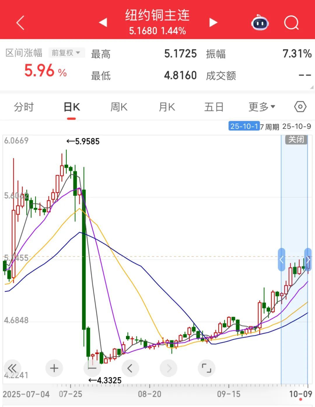 10月以來,全球銅期貨價格顯著上漲,截至北京時間10月9日15:00,紐約銅主連10月以來累計(jì)上漲近6%。滬銅主連今日上漲4.19%。