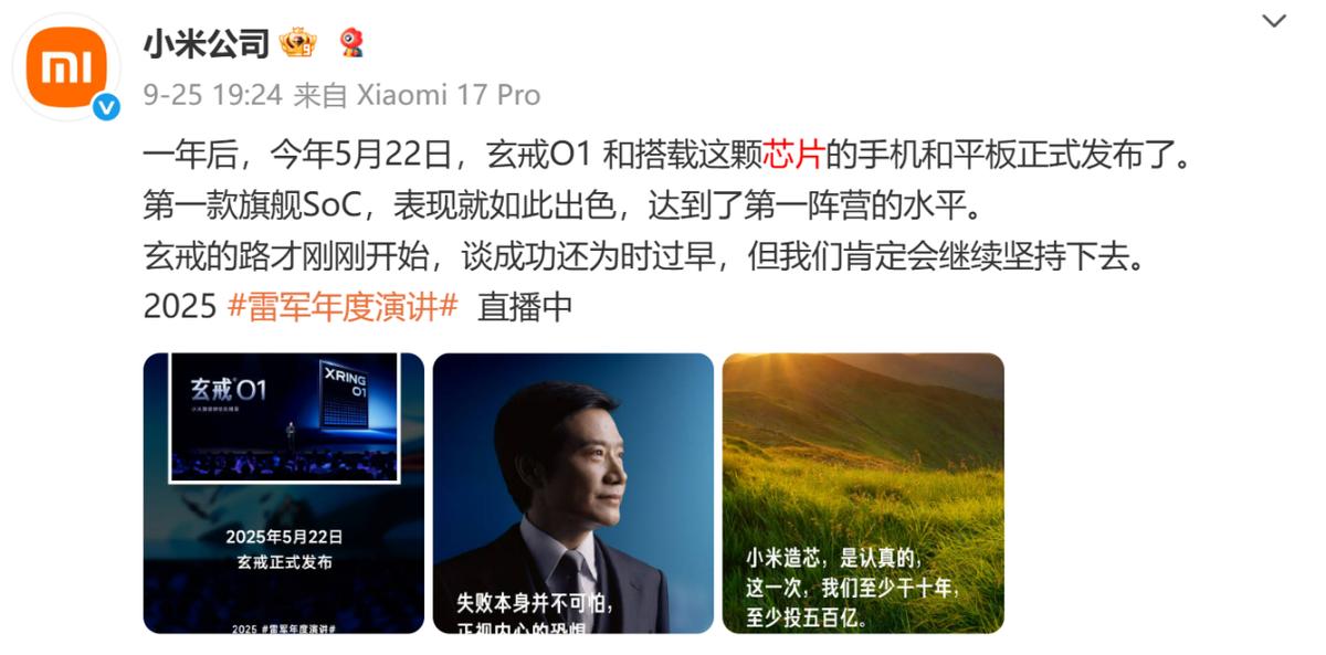最近,雷軍在2025年度演講上又有新動作。小米預(yù)計投入至少500億元,開啟為期十年的自研手機SoC(系統(tǒng)級芯片)征程。與此同時,小米首發(fā)的自研旗艦芯片“玄戒O1”等產(chǎn)品迅速成為科技圈熱議焦點。