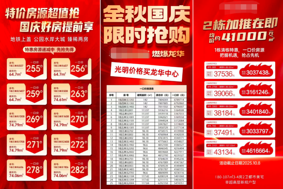 深圳國慶期間部分樓盤宣傳海報截圖
