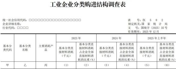 工業(yè)企業(yè)分類購進(jìn)結(jié)構(gòu)調(diào)查表(IX582表)