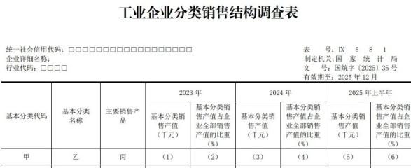 工業(yè)企業(yè)分類銷售結(jié)構(gòu)調(diào)查表(IX581表)