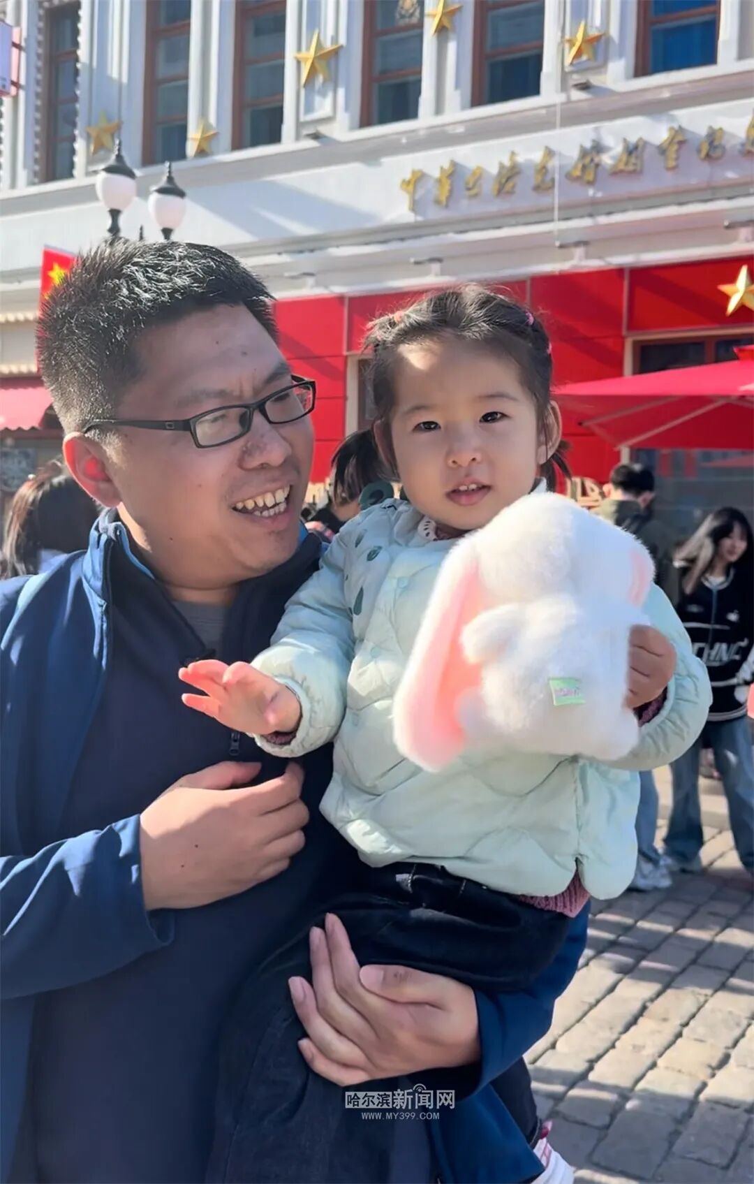 面對記者的鏡頭,陳先生與女兒小核桃的互動充滿溫情,父女倆對哈爾濱的喜愛之情溢于言表。