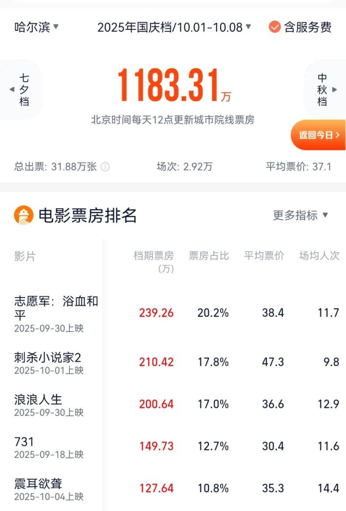 假期末尾票房逆跌,哈爾濱國(guó)慶檔斬獲1183萬(wàn)元