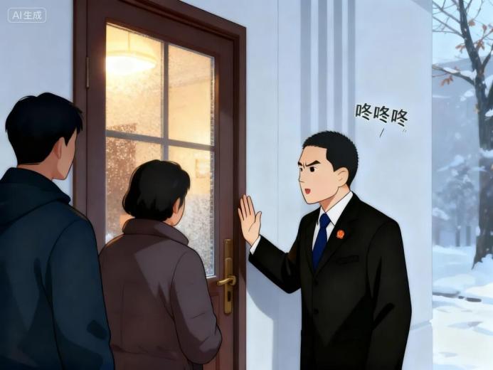 透過(guò)入戶門(mén)磨砂玻璃能看到房間燈亮著,但敲門(mén)許久無(wú)人應(yīng)答。在門(mén)上貼好執(zhí)行通知書(shū)和傳票后,我聯(lián)系小區(qū)居委了解情況。