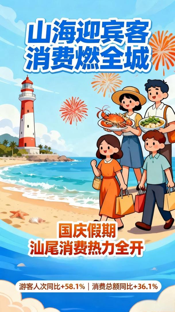 在這個(gè)黃金周,雙節(jié)與全運(yùn)相遇,汕尾這座城市熱鬧非凡。碧海金沙與綠水青山相互映襯,吸引了來(lái)自四面八方的游客,全城消費(fèi)熱情高漲。“山海迎賓客,消費(fèi)燃全城”成為假日經(jīng)濟(jì)的主旋律。