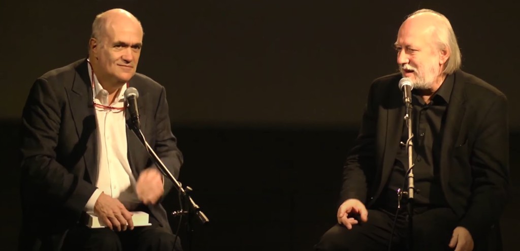 2014年,科爾姆·托賓與拉斯洛·卡撒茲納霍凱在美國的一次對談。