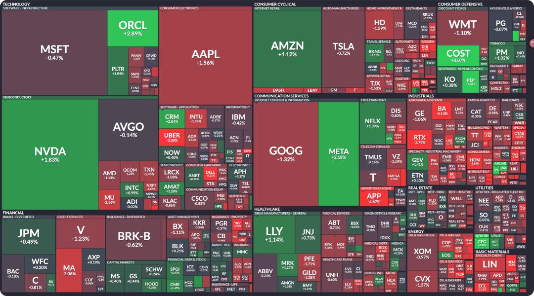 盡管尾盤時(shí),市場(chǎng)對(duì)微軟數(shù)據(jù)中心需求的樂(lè)觀預(yù)期提供了一定支撐,使大盤跌幅有所收窄,但標(biāo)普500、納指和道指最終仍以下跌收盤。
