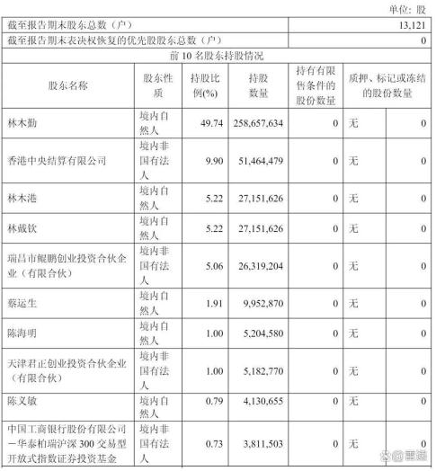 此外,2023年,13位股東及董監(jiān)高合計(jì)減持743.95萬(wàn)股(占總股本2%),套現(xiàn)13.69億元。2024年9月,重要股東累計(jì)減持2780.35萬(wàn)股,套現(xiàn)超50億元。同期,東鵬飲料董事長(zhǎng)林木勤通過(guò)東鵬遠(yuǎn)道、東鵬致遠(yuǎn)、東鵬致誠(chéng)等公司累計(jì)減持金額超過(guò)10億元,是當(dāng)時(shí)套現(xiàn)最多的。2021年,林木勤直接持股比例約為50.32%(含直接持股49.74%及間接持股0.58%)。