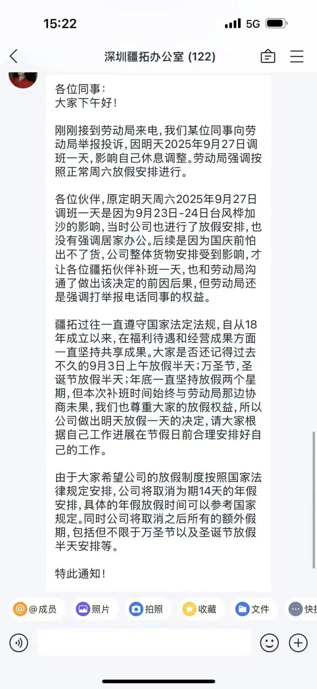 公司感覺被‘背刺’,不僅取消了補(bǔ)班,還順手取消了全體員工法定假期之外的圣誕節(jié)、萬圣節(jié)休假,14天年假也一并取消。